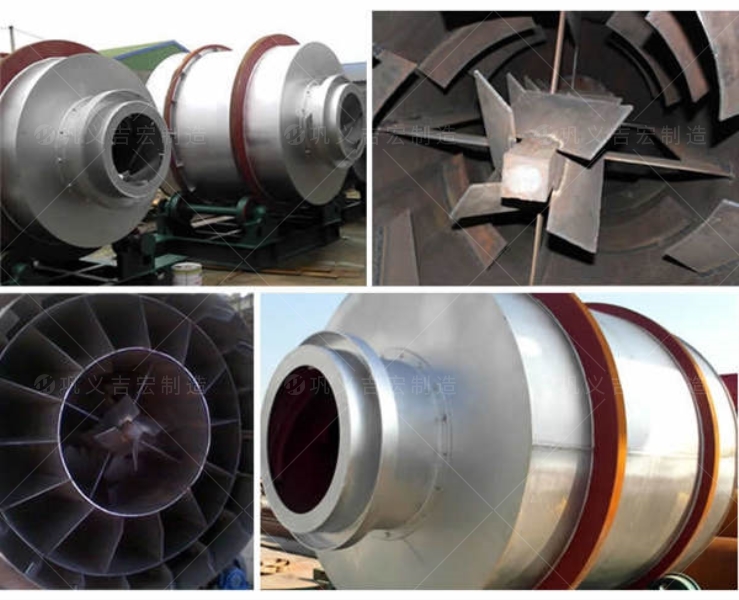 原料從進料裝置輸送到轉鼓內部,并在平行流中干燥。原料被連續地拾取并分散在內部的造紙板下面,以螺旋的方式被加熱,然后原料從另一端移動到中間層,并被逆流干燥。原料在中層以兩步一步行進的方式反復炒制。原料在中間層可以極大的吸收中間層的熱量,會使原料長時間干燥。行進到中間層的另一端后,原料落入外層。原料在外輥中以矩形多圈方式行進進行干燥。達到干燥效果的原料在熱空氣的作用下迅速從滾筒中排出。如果達不到干燥效果,濕料由于自身重量無法快速排出,會繼續在長方形的造紙板中干燥,直到達到干燥標準。